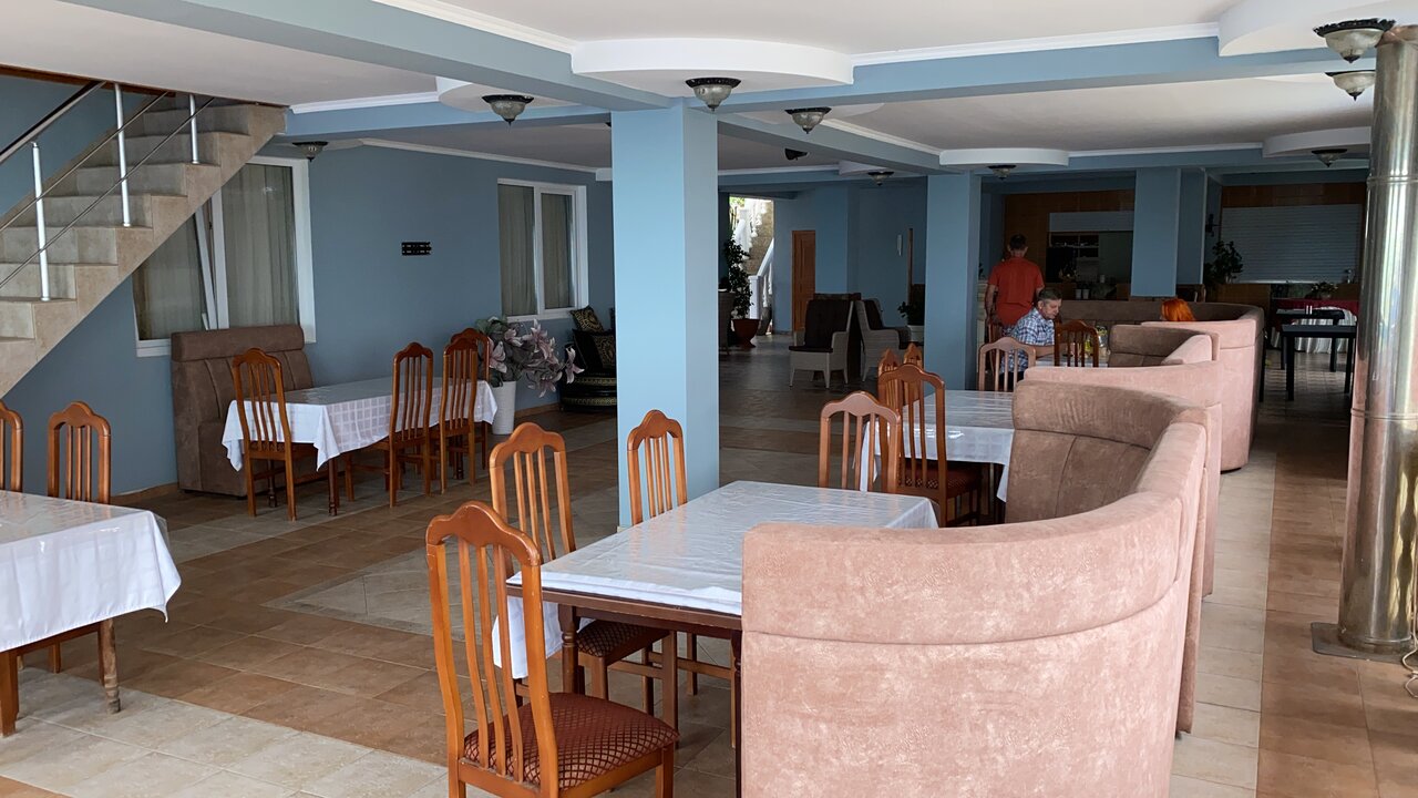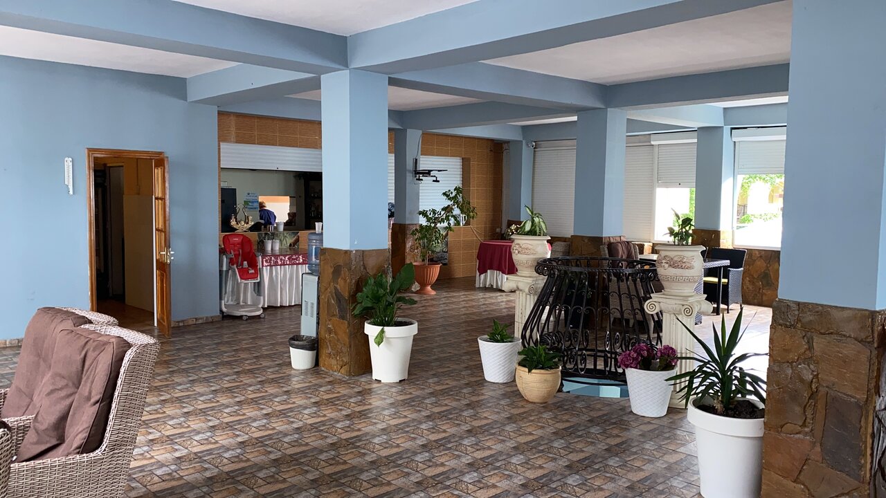 Описание: Четырёх этажное здание, расположено на красивой, ухоженной территории с уютными столиками под тенью деревьев. На возвышенности. Wi-Fi , крытый бассейн с подогревом, детская площадка, камера хранения багажа, гладильные услуги. Терраса с видом на море, плетёная мебель , зона солярия, релакса.